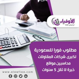 يرجى ارسال الـ CV ملف PDF يحتوي علي السيرة الذاتية بالعربية والمؤهل والخبرات والدورات وكتابة التخصص في موضوع البريد الإلكترونى cv@elawfiaa.com أو واتساب 01128978888