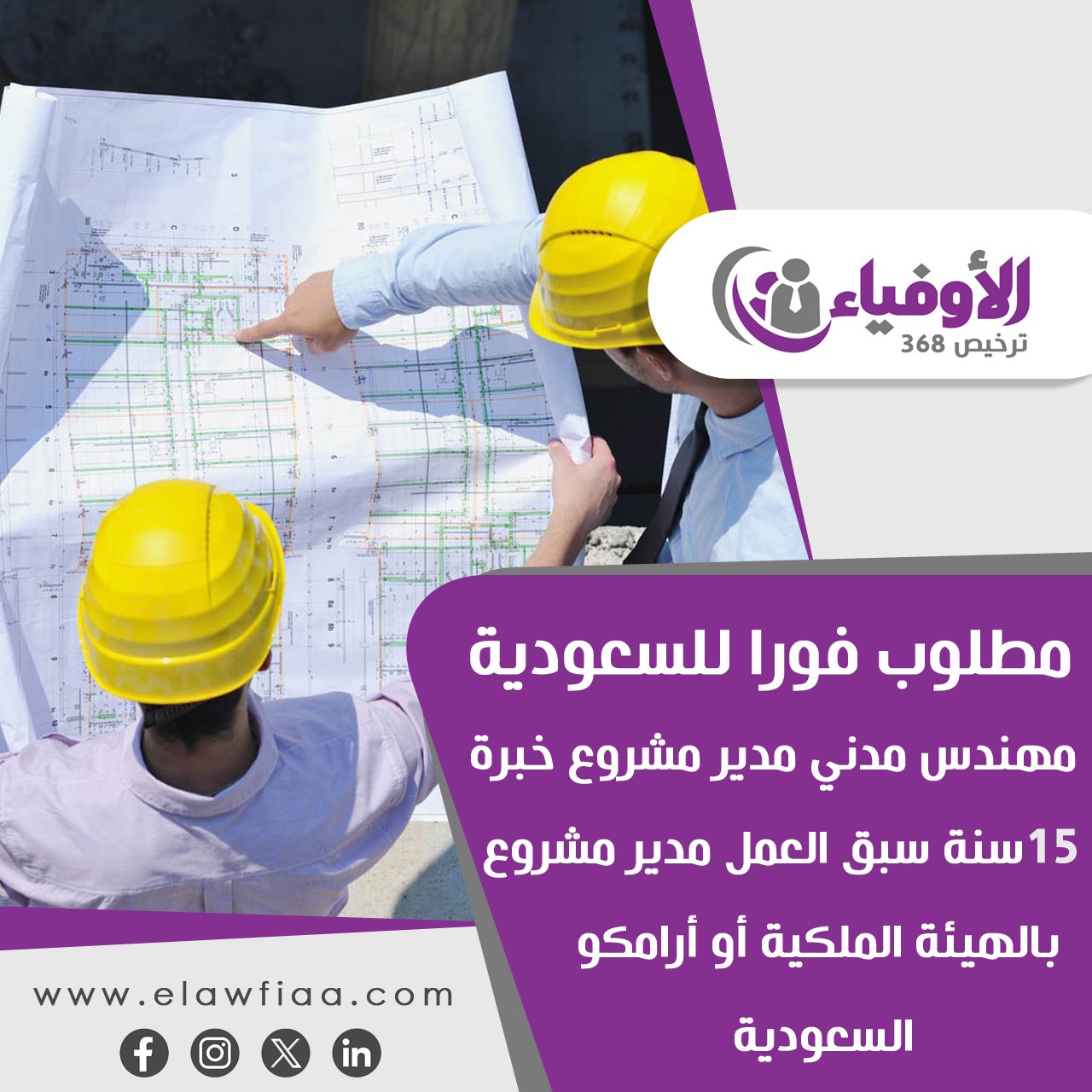 مهندس مدني مدير مشروع خبرة لاتقل عن ١٥ سنة